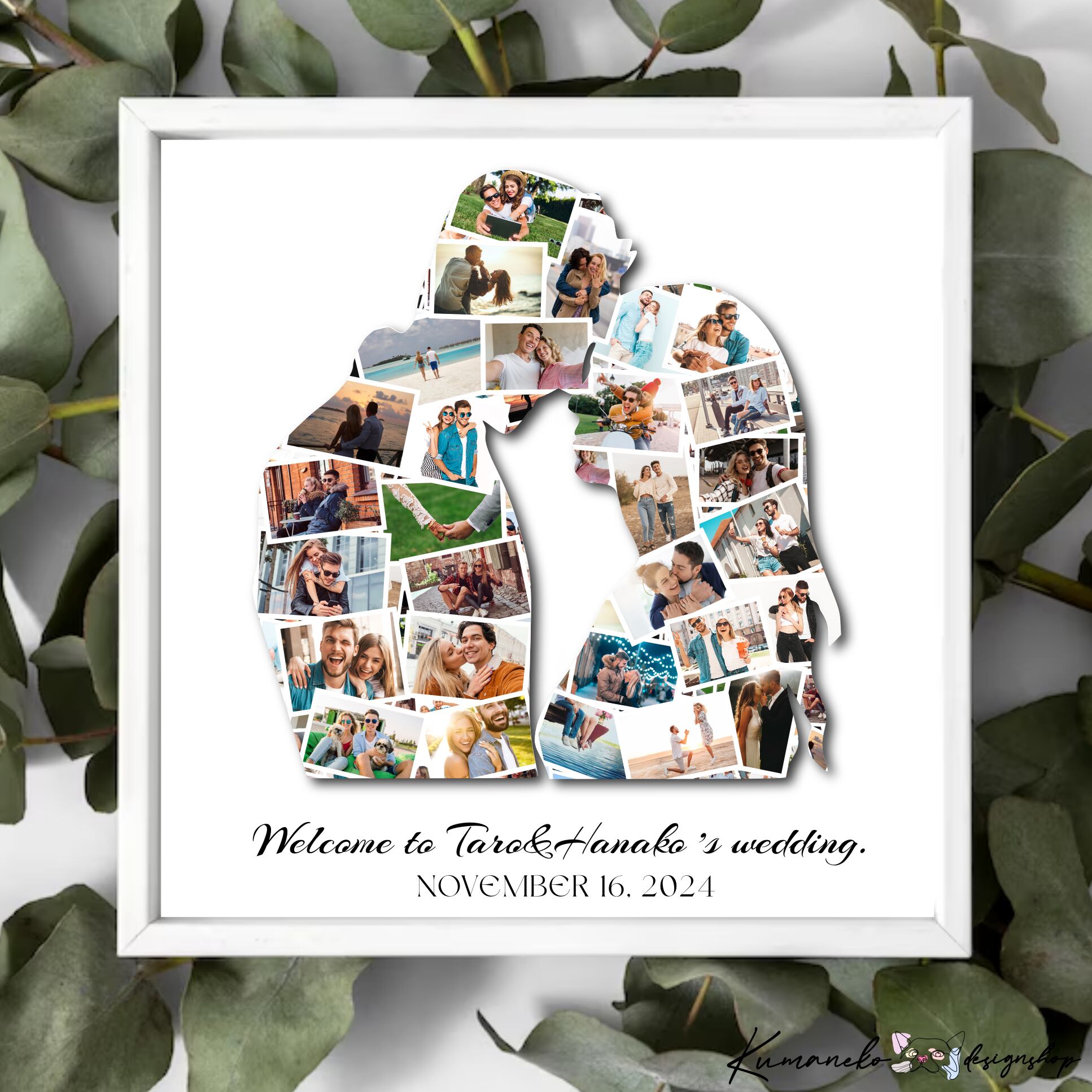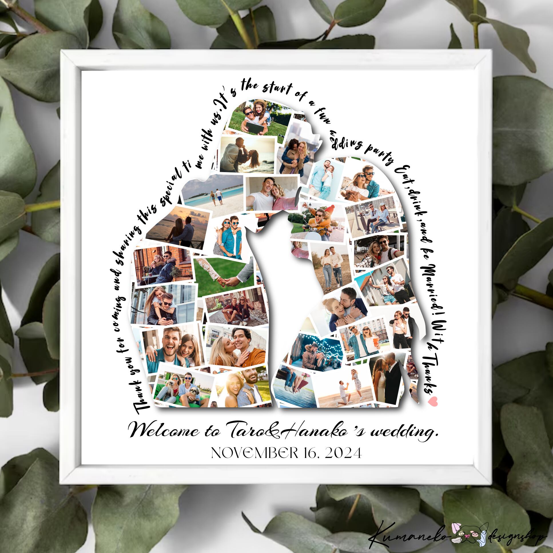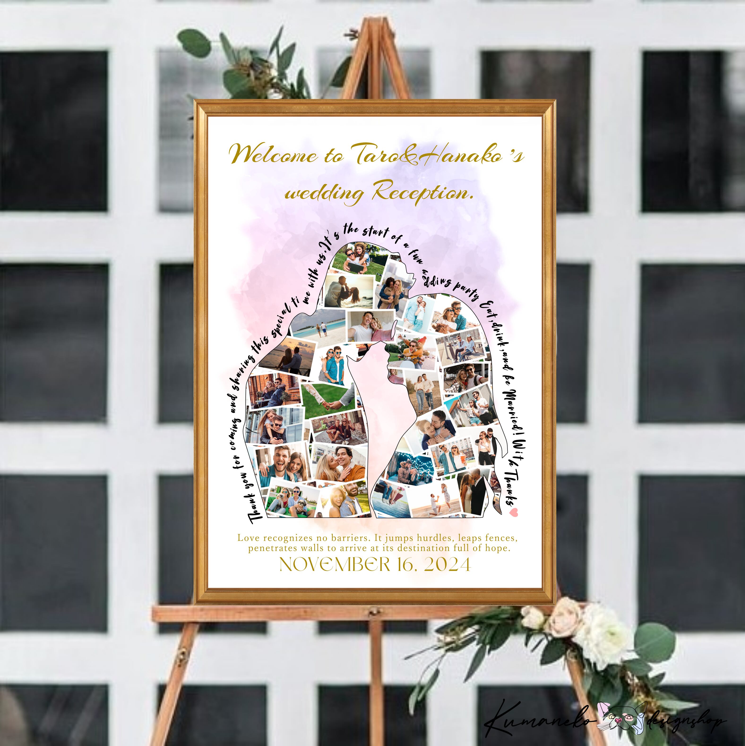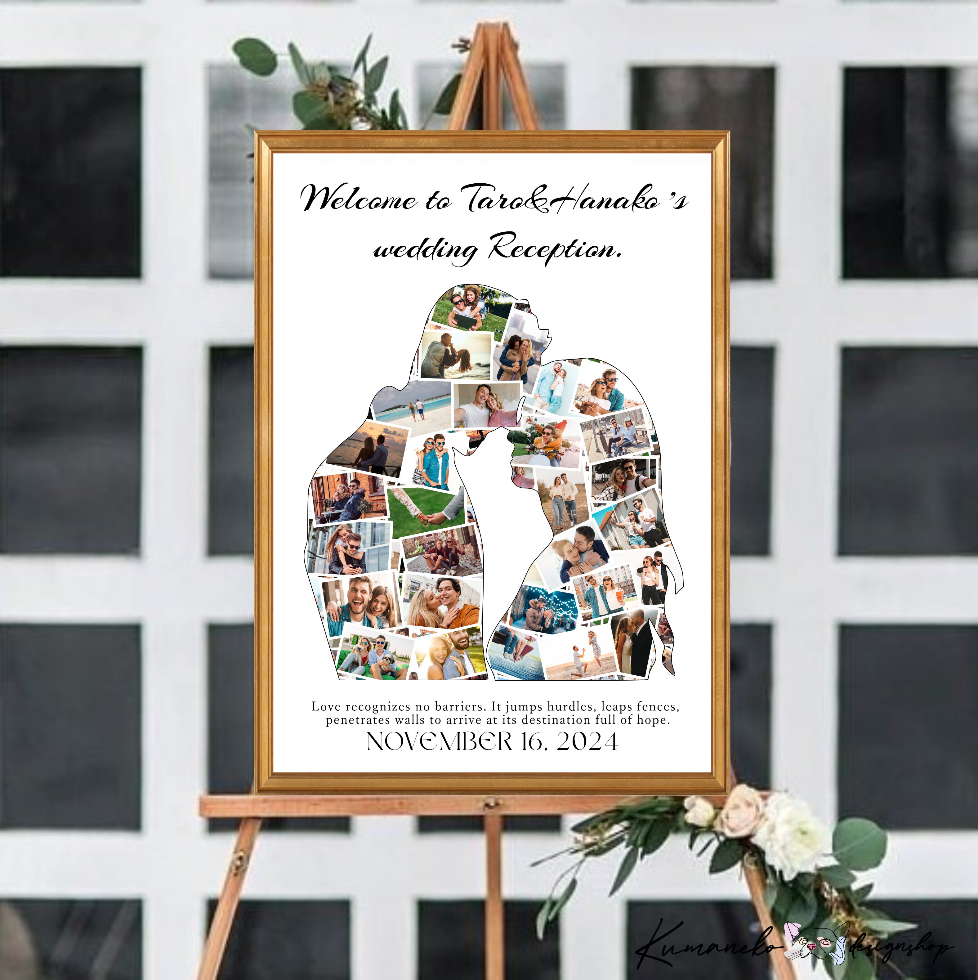 ウェディング情報サイトにも掲載された思い出のお写真で作るお洒落なシルエット型のウェルカムポスターorパネルボード。