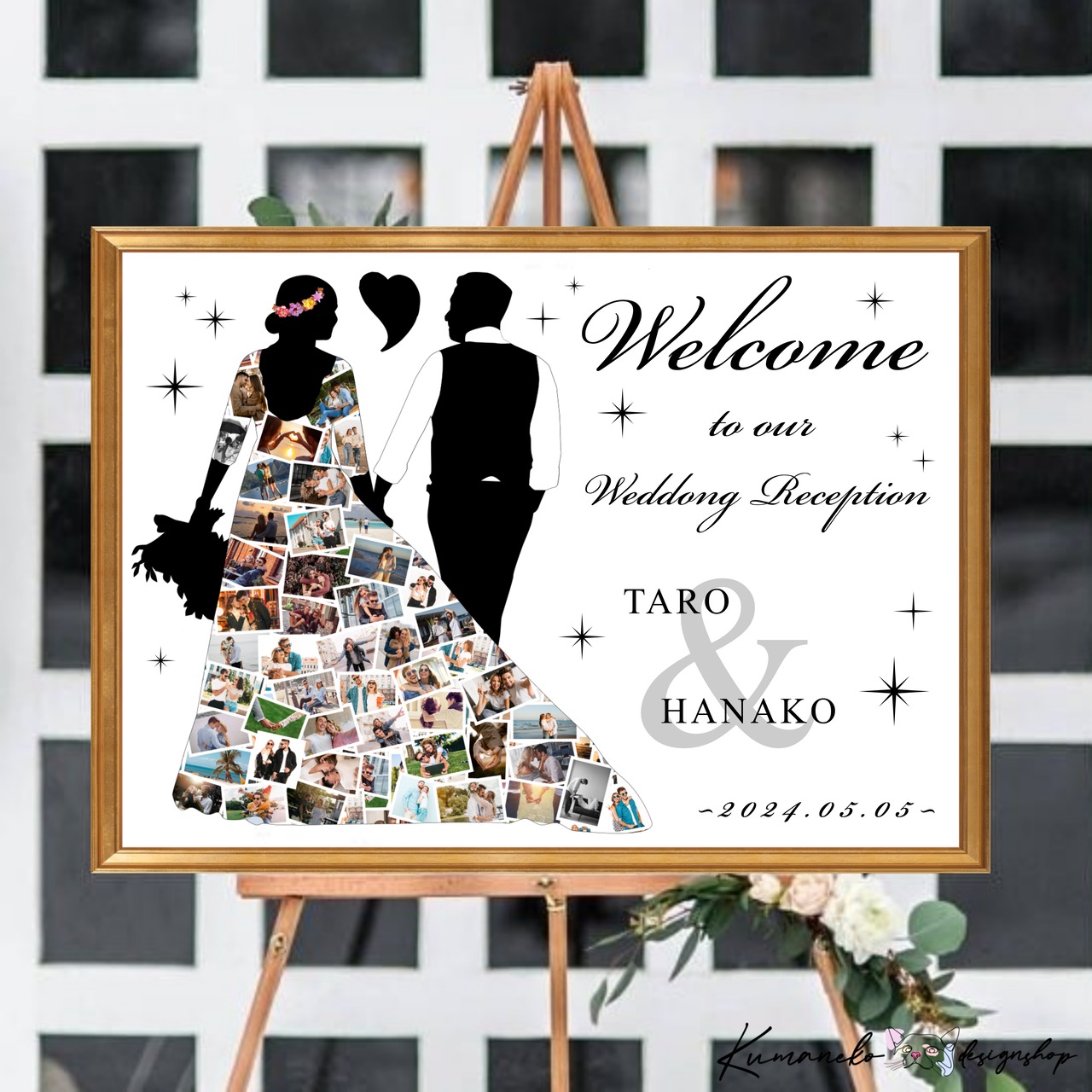 ウェディング情報サイトにも掲載された思い出のお写真で作るお洒落なシルエットコラージュのウェルカムポスターorパネルボード。