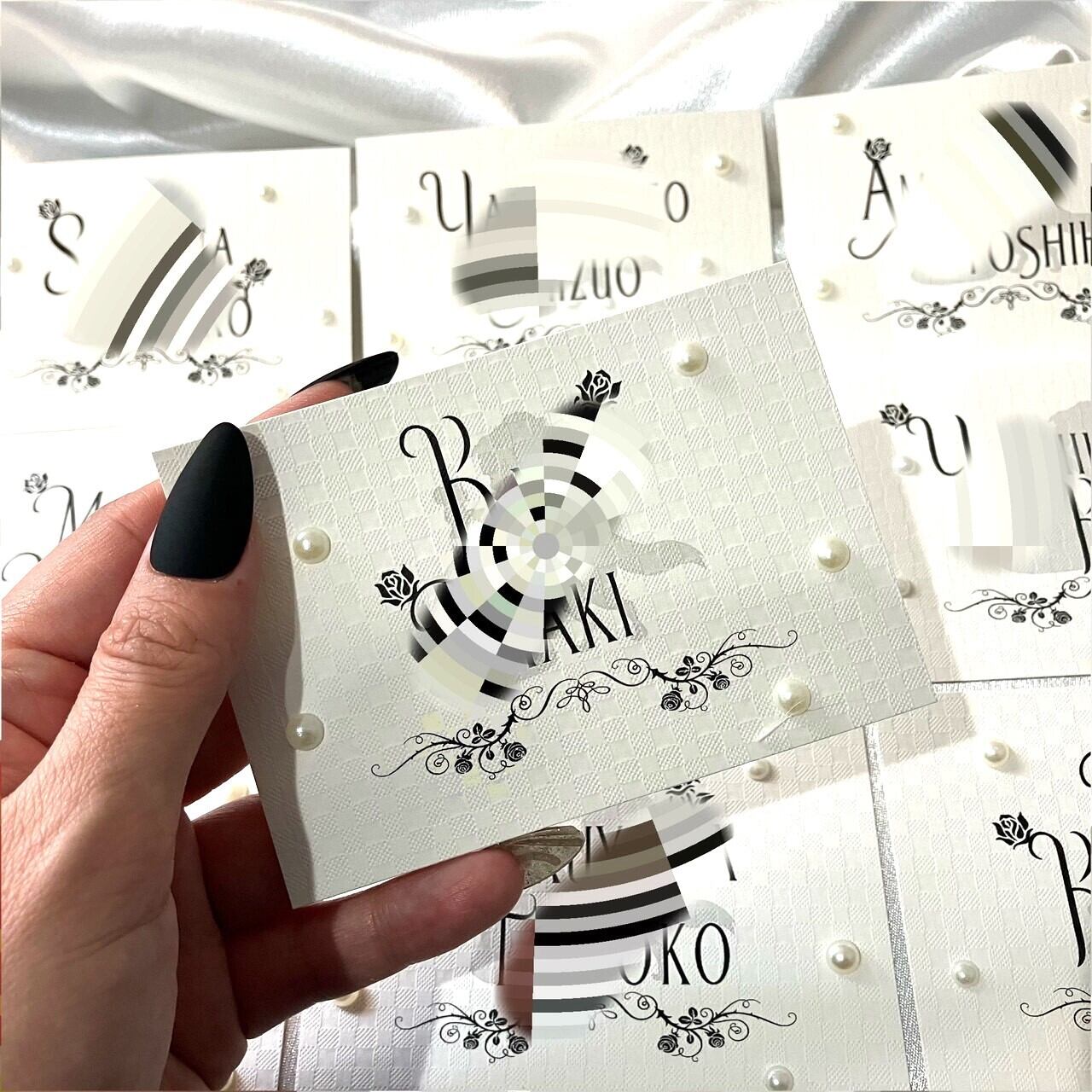 ・席札はお名前、メニュー内容の間違えがないか必ず新郎新婦様以外の方にも確認をしていただいて下さい。印刷後の間違えは通常金額の追加購入での対応となりますのでご注意下さい。